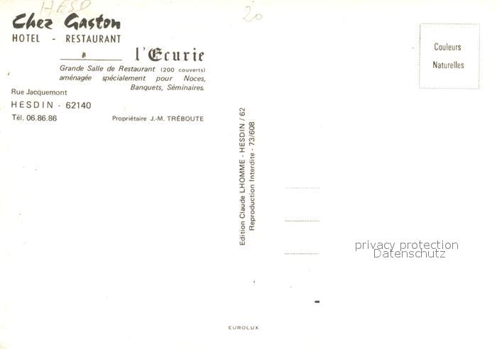 13518352 Hesdin Chez Gaston Hotel Restaurant postalisch nicht gelaufen Erhaltung siehe scans [KathaD81] KatCode: 11170062462447