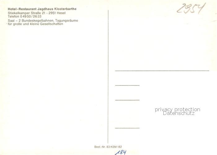 73757798 Hesel Ostfriesland Jagdhaus Klosterbarthe postalisch nicht gelaufen Erhaltung siehe scans [LiesaD40] KatCode: 11110003457010