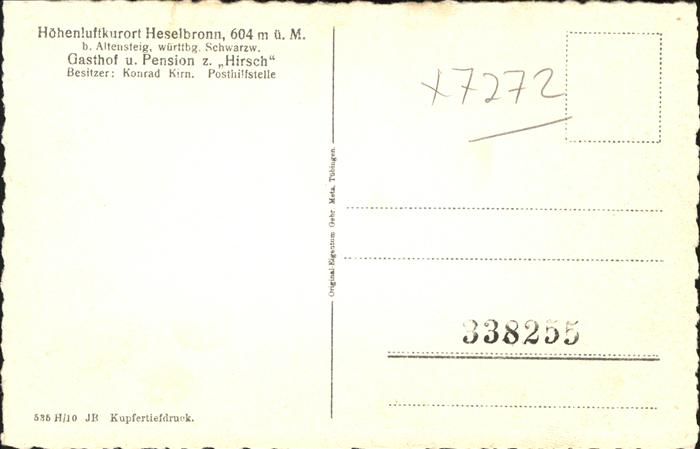 41210280 Heselbronn Altensteig CALW BW Pension Hirsch postalisch nicht gelaufen gute Erhaltung Alte Ansichtskarte Postkarte hz_U Katcode 11110008235006