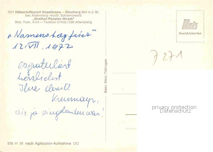 72883512 Heselbronn Gasthof Pension Hirsch postalisch nicht gelaufen Erhaltung siehe scans [AndreD76] KatCode: 11110008235006