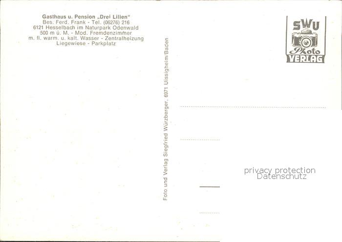 72011705 Hesselbach Odenwald Fliegeraufnahme Gasthaus Pension Drei Lilien postalisch nicht gelaufen Erhaltung siehe scans KatCode: 11110006437008