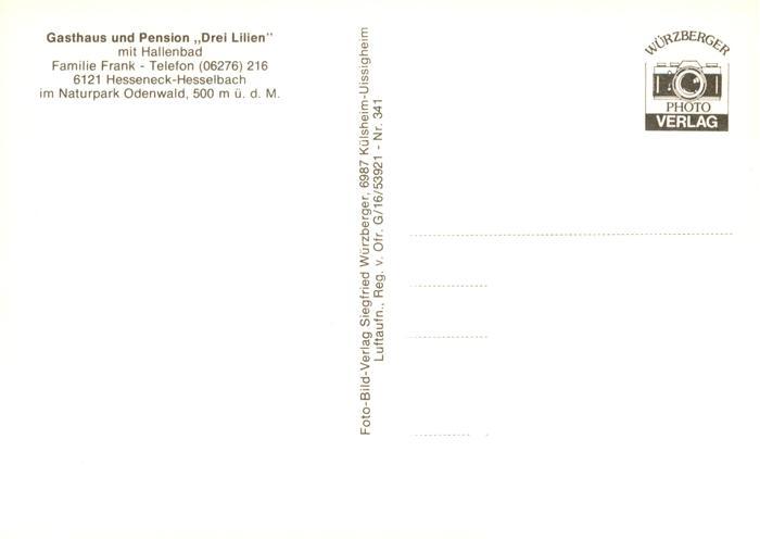 73875745 Hesselbach Odenwald Gasthaus Pension Drei Lilien postalisch nicht gelaufen Erhaltung siehe scans [FriedD77] KatCode: 11110006437008