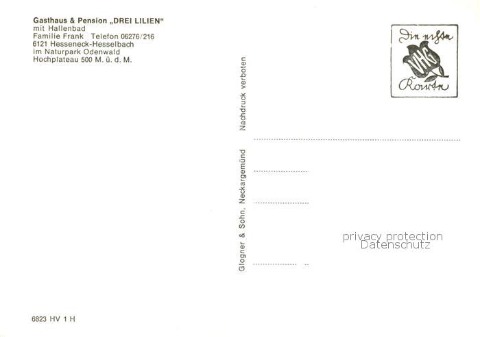 73867339 Hesselbach Odenwald Gasthaus Pension Drei Lilien Schwarzwild im Naturpark postalisch nicht gelaufen Erhaltung siehe scans [WerneD78] KatCode: 11110006437008