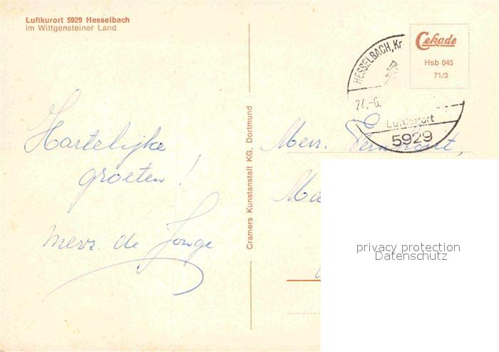 72855879 alte Postkarte Hesselbach Wittgenstein Panorama Luftkurort im Wittgensteiner Land postalisch gelaufen Erhaltung siehe scans [FriedD77] KatCode: 11110005970028
