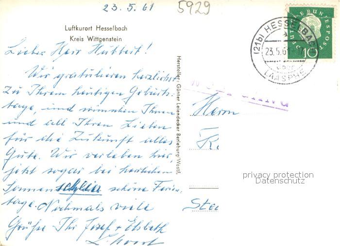 73710324 alte Postkarte Hesselbach Wittgenstein Teilansicht postalisch gelaufen Erhaltung siehe scans [LiesaD40] KatCode: 11110005970028