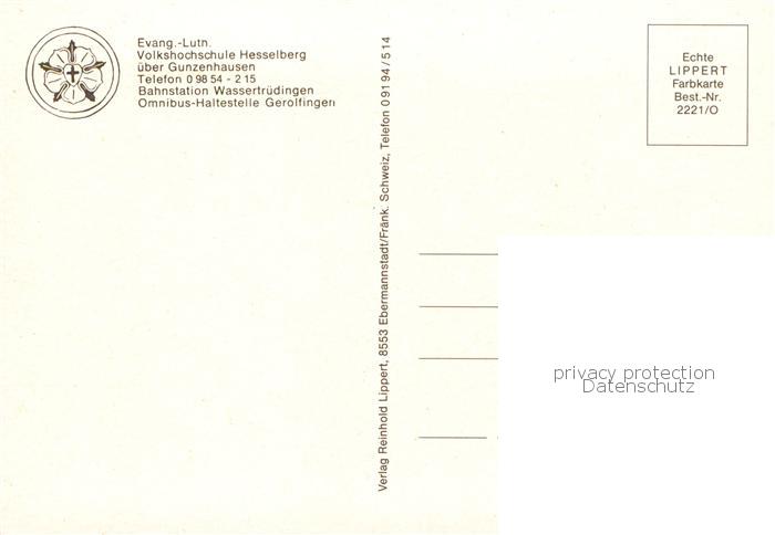 73839838 Hesselberg Gunzenhausen Evang. Luth. Volkshochschule Landschaftspanorama postalisch nicht gelaufen Erhaltung siehe scans [FriedD77] KatCode: 11110009577136