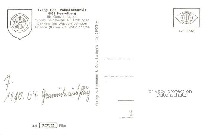 73595669 Hesselberg Gunzenhausen Evangelisch lutherische Volkshochschule postalisch nicht gelaufen Erhaltung siehe scans [FriedD77] KatCode: 11110009577136