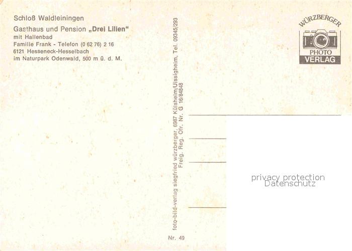 72797120 Hesseneck Hesselbach Fliegeraufnahme Schloss Waldleiningen Gasthaus Pension Drei Lilien postalisch nicht gelaufen Erhaltung siehe scans [LiesaD40] KatCode: 11110006437008