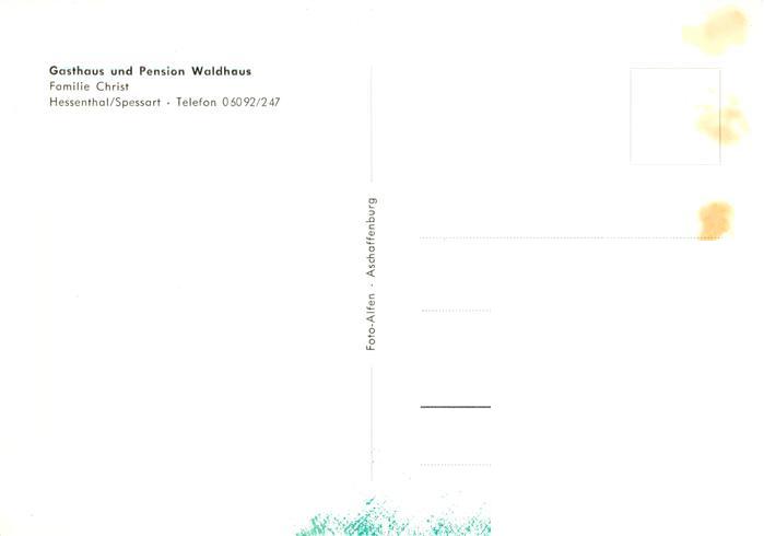 73902908 Hessenthal Spessart Gasthaus Pension Waldhaus postalisch nicht gelaufen Erhaltung siehe scans [WerneD78] KatCode: 11110009671141
