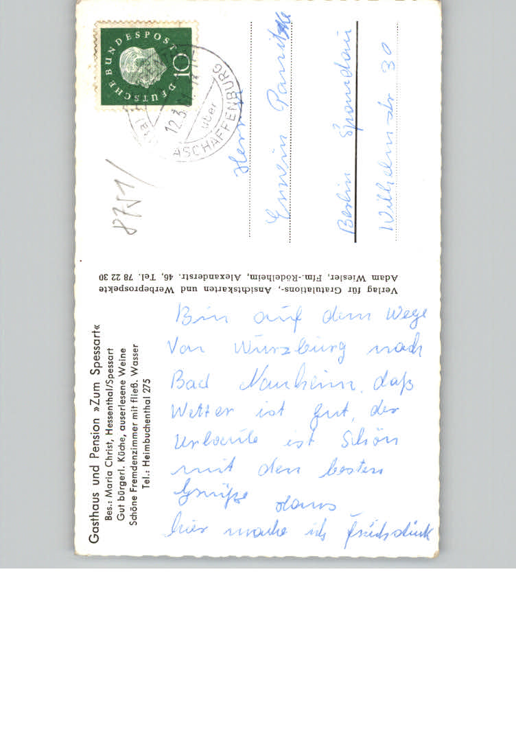 31175254 Hessenthal Spessart Gasthaus zum Spessart postalisch nicht gelaufen KatCode: 11110009671141