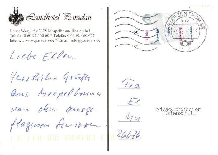73092883 alte Postkarte Hessenthal Spessart Landhotel Paradais postalisch gelaufen Erhaltung siehe scans [NatalD47] KatCode: 11110009671141