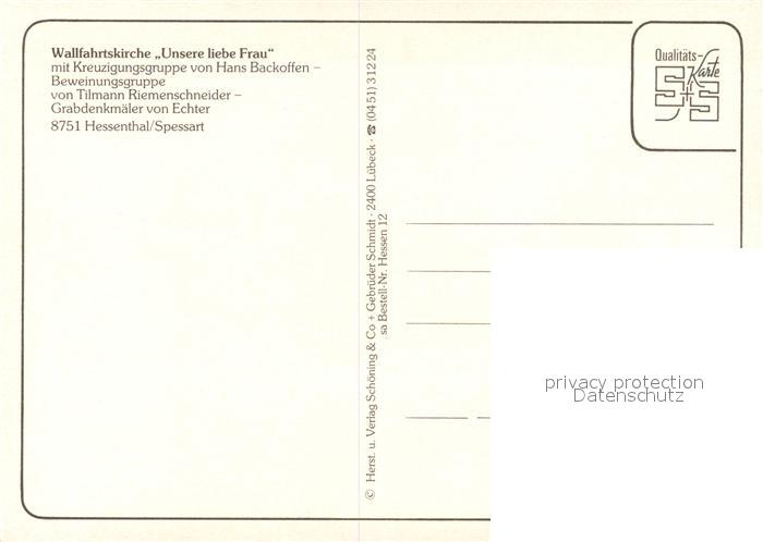 73271400 Hessenthal Spessart Wallfahrtskirche Unsere liebe Frau postalisch nicht gelaufen Erhaltung siehe scans [KathaD81] KatCode: 11110009671141
