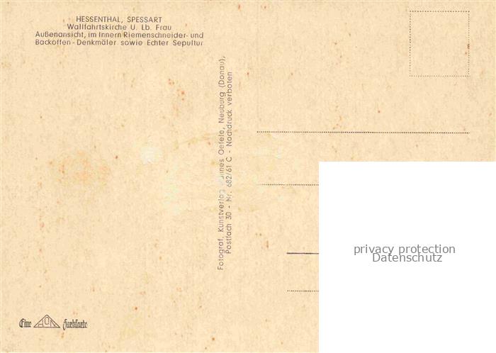 74020447 Hessenthal Spessart Wallfahrtskirche Unserer Lieben Frau postalisch nicht gelaufen Erhaltung siehe scans [FriedD77] KatCode: 11110009671141