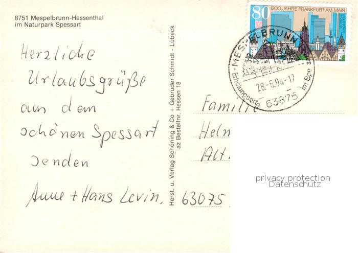 73243118 alte Postkarte Hessenthal Spessart Wallfahrtskirche Wasserschloss Mespelbrunn Gasthaus Egerland postalisch gelaufen Erhaltung siehe scans [KathaD81] KatCode: 11110009671141