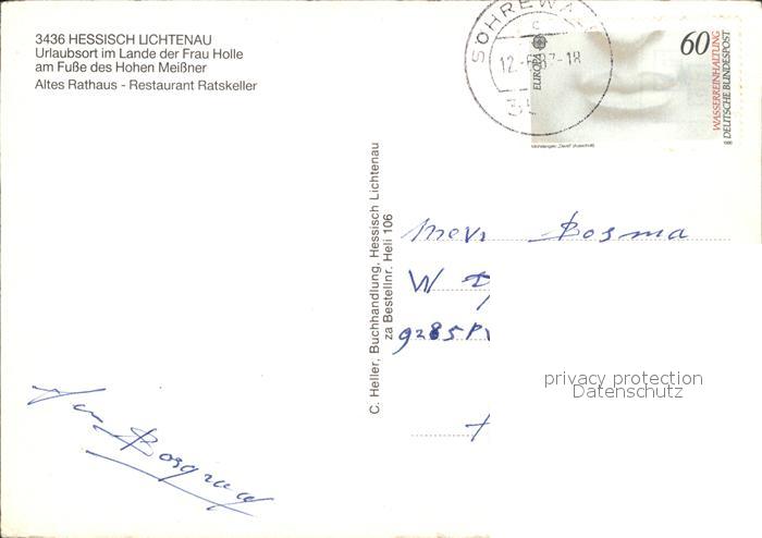 72449345 alte Postkarte Hessisch Lichtenau Altes Rathaus Restaurant Ratskeller postalisch gelaufen Erhaltung siehe scans KatCode: 11110006636006