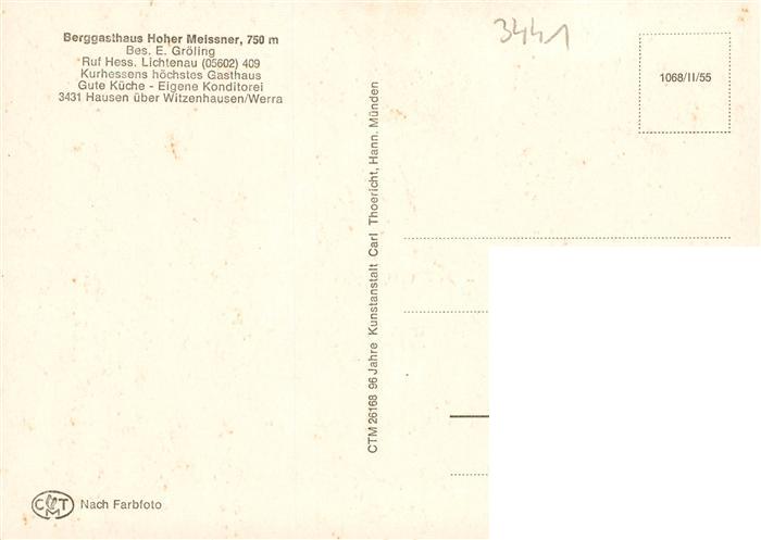 73944379 Hessisch-Lichtenau Berggasthaus Hoher Meissner postalisch nicht gelaufen Erhaltung siehe scans [FriedD77] KatCode: 11110006636006