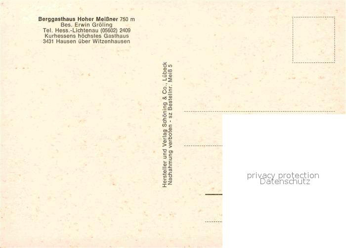 72697827 Hessisch Lichtenau Hoher Meissner Sender Altarstein Seesteine postalisch nicht gelaufen Erhaltung siehe scans [KathaD79] KatCode: 11110006636006