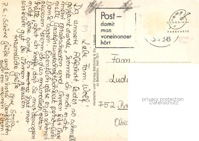 73240303 alte Postkarte Hessisch Lichtenau Rathaus Hauptstrasse Kirche Volks und Realschule von Stein Schule postalisch gelaufen Erhaltung siehe scans [KathaD81] KatCode: 11110006636006