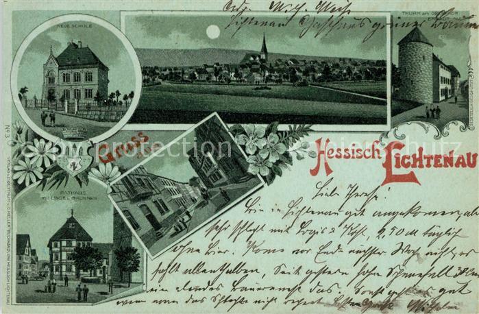 33139196 alte Postkarte Hessisch Lichtenau Schue Panorama Rathaus postalisch gelaufen Erhaltung siehe scans [KathaD81] KatCode: 11110006636006