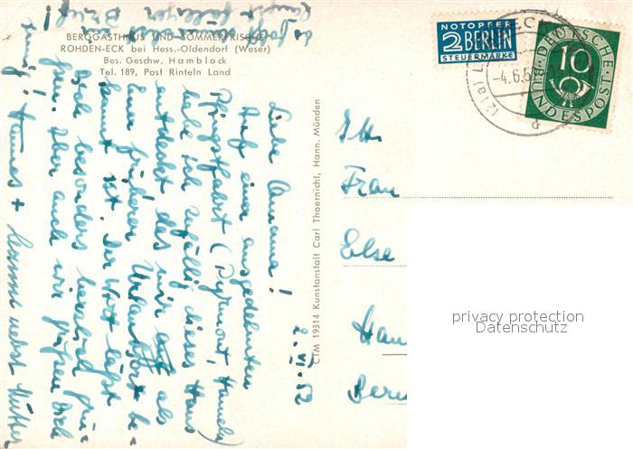 73749713 alte Postkarte Hessisch Oldendorf Berggasthaus Rohden Eck postalisch gelaufen Erhaltung siehe scans [WerneD78] KatCode: 11110003252007