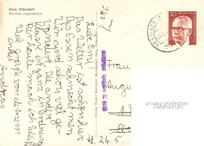 73165374 alte Postkarte Hessisch Oldendorf Berliner Jugendheim postalisch gelaufen Erhaltung siehe scans [KathaD81] KatCode: 11110003252007
