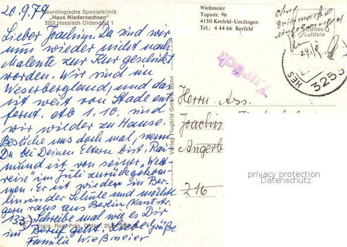 72764486 alte Postkarte Hessisch Oldendorf Fliegeraufnahme Neurologische Klinik postalisch gelaufen Erhaltung siehe scans [AndreD76] KatCode: 11110003252007