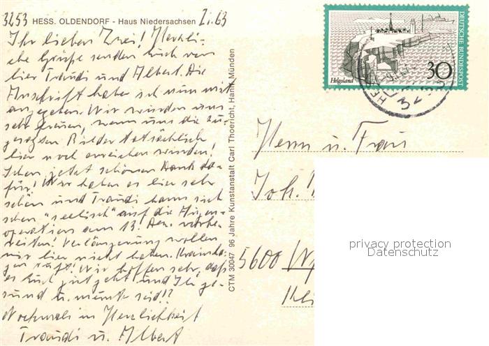 72682467 alte Postkarte Hessisch Oldendorf Haus Niedersachsen postalisch gelaufen Erhaltung siehe scans [FriedD77] KatCode: 11110003252007