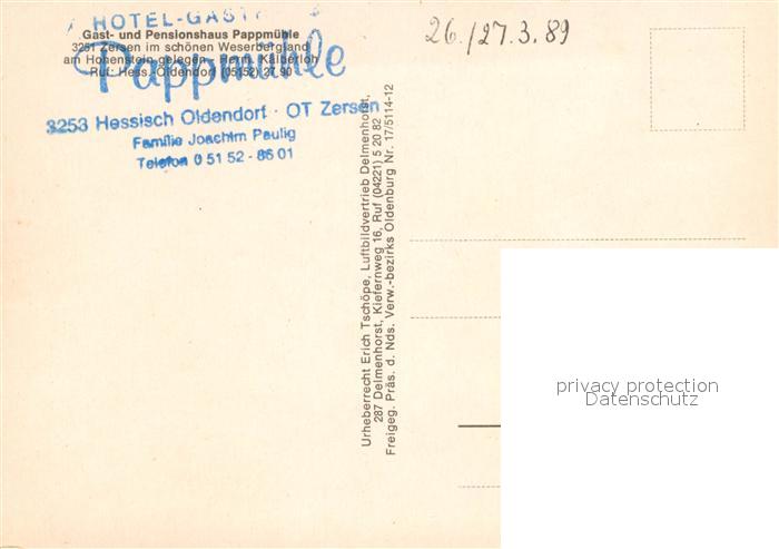 72991278 Hessisch Oldendorf Hotel Gasthaus Pappmuehle Fliegeraufnahme postalisch nicht gelaufen Erhaltung siehe scans [WerneD78] KatCode: 11110003252007