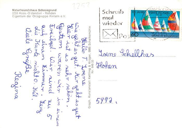73884028 alte Postkarte Hessisch-Oldendorf Naturfreundehaus Schneegrund postalisch gelaufen Erhaltung siehe scans [FriedD77] KatCode: 11110003252007