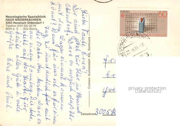 73654395 alte Postkarte Hessisch Oldendorf Neurologische Spezialklinik Haus Niedersachsen postalisch gelaufen Erhaltung siehe scans [WerneD78] KatCode: 11110003252007