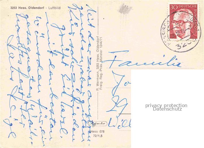 34145181 alte Postkarte Hessisch-Oldendorf Niedersachsen Fliegeraufnahme postalisch gelaufen Erhaltung siehe scans [WerneD78] KatCode: 11110003252007