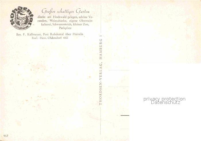 72836288 Hessisch Oldendorf Weinschaenke Rohdental Gartenrestaurant postalisch nicht gelaufen Erhaltung siehe scans [FriedD77] KatCode: 11110003252007