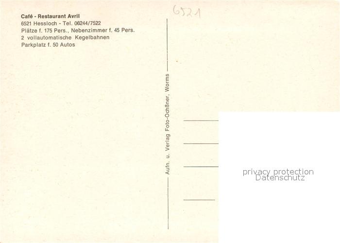 73743557 Hessloch Dittelsheim-Hessloch Cafe Restaurant Avril postalisch nicht gelaufen Erhaltung siehe scans [FriedD77] KatCode: 11110007331015