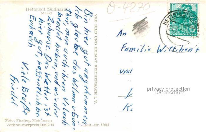 32658538 alte Postkarte Hettstedt Markt postalisch gelaufen Erhaltung siehe scans [AndreD76] KatCode: 11110015087220