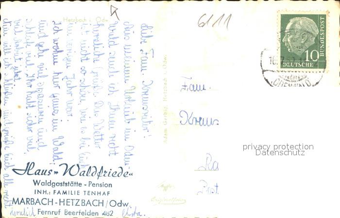41584576 Hetzbach Beerfelden Odenwald Hessen Fliegeraufnahme Haus Waldfriede Gasthaus postalisch gelaufen Alte Ansichtskarte Postkarte alte Postkarte hz_L Katcode 11110006437002