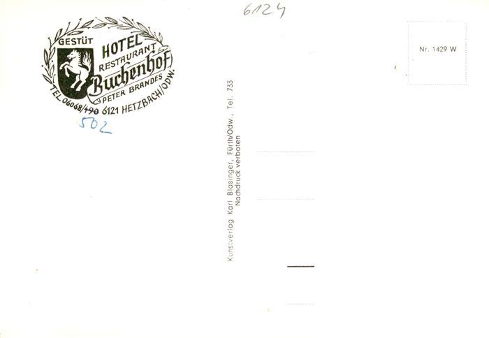 73887073 Hetzbach Beerfelden Odenwald Hessen Gestuet Hotel Restaurant Buchenhof postalisch nicht gelaufen Erhaltung siehe scans [FriedD77] Frie Katcode 11110006437002