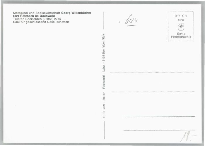 40690807 Hetzbach Beerfelden Odenwald Hessen Metzgerei Wirtschaft Georg Willenbuecher postalisch nicht gelaufen Alte Ansichtskarte Postkarte Katcode 11110006437002