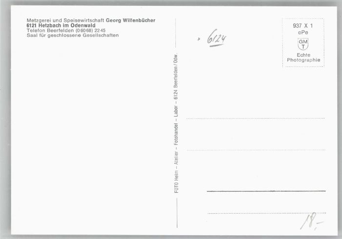 40690808 Hetzbach Beerfelden Odenwald Hessen Metzgerei Wirtschaft Georg Willenbuecher postalisch nicht gelaufen Alte Ansichtskarte Postkarte Katcode 11110006437002