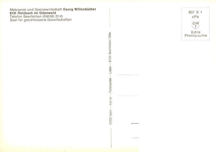 73868696 Hetzbach Beerfelden Odenwald Hessen Metzgerei Wirtschaft Willenbuecher postalisch nicht gelaufen Erhaltung siehe scans [FriedD77] Frie Katcode 11110006437002