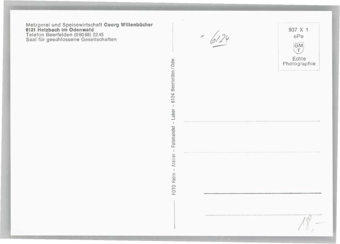 40690804 Hetzbach Metzgerei Wirtschaft Georg Willenbücher KatCode 11110006437002