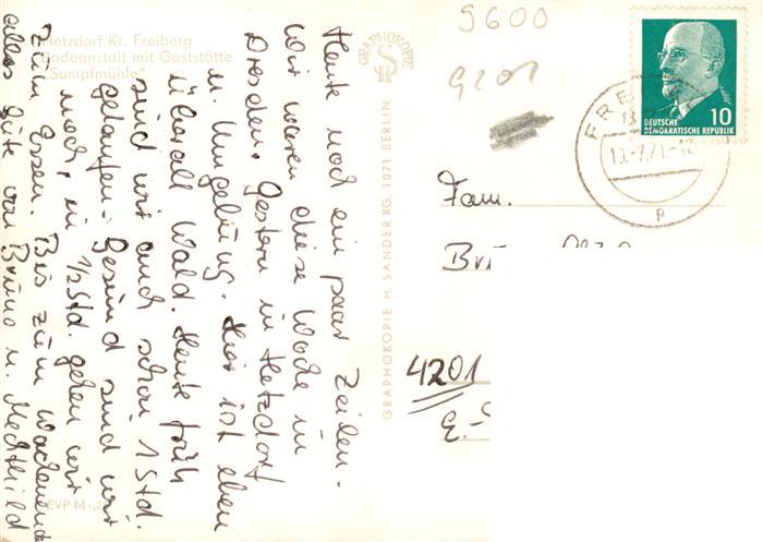 73887316 alte Postkarte Hetzdorf Bockelwitz Badeanstalt mit Gaststaette Sumpfmuehle postalisch gelaufen Erhaltung siehe scans [FriedD77] KatCode: 11110014375020