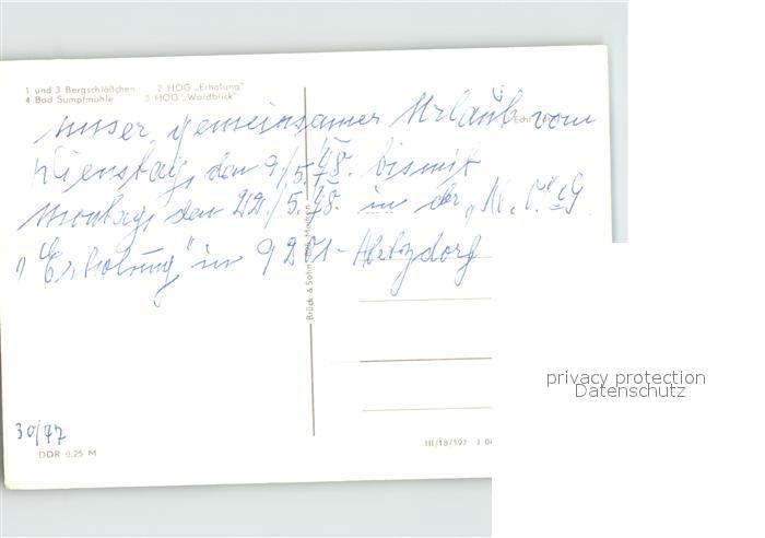 72412734 Hetzdorf Halsbruecke Bergschloesschen HO Gaststaetten Bad Sumpfmuehle postalisch nicht gelaufen Erhaltung siehe scans KatCode: 11110014177210