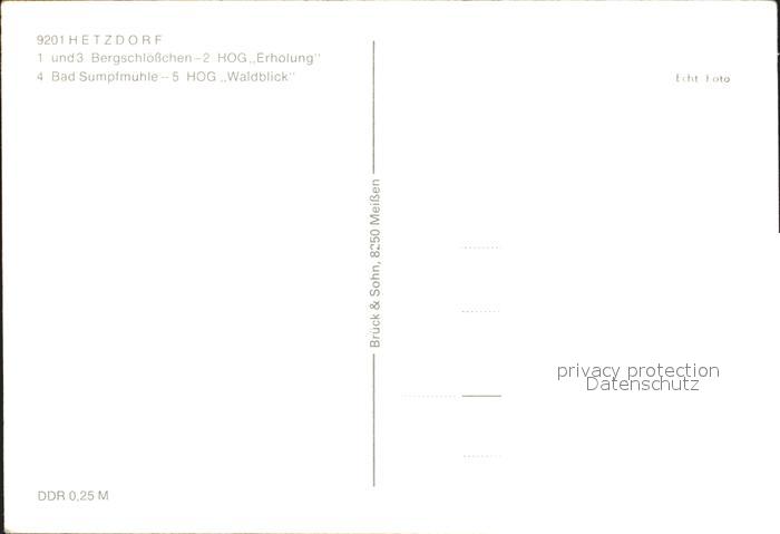 72328829 Hetzdorf Halsbruecke Bergschloesschen HOG Erholung Bad Sumpfmuehle HOG Waldblick postalisch nicht gelaufen Erhaltung siehe scans KatCode: 11110014177210