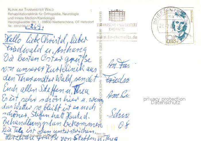 73652893 alte Postkarte Hetzdorf Halsbruecke Klinik am Tharandter Wald Parkanlagen postalisch gelaufen Erhaltung siehe scans [FriedD77] KatCode: 11110014177210