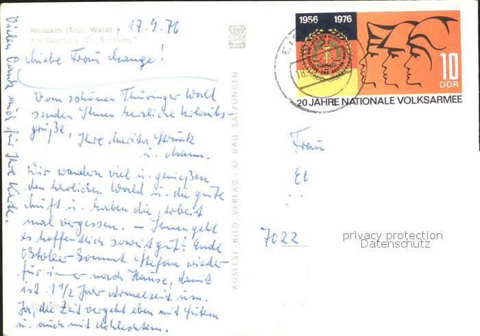 72176524 alte Postkarte Heubach Thueringen Am Gasthaus Zur Erholung postalisch gelaufen Erhaltung siehe scans KatCode: 11110016069024