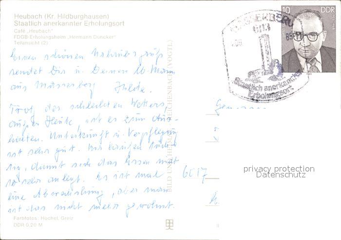 72120459 alte Postkarte Heubach Thueringen Cafe Heubach FDGB Erholungsheim Hermann Dunker postalisch gelaufen Erhaltung siehe scans KatCode: 11110016069024