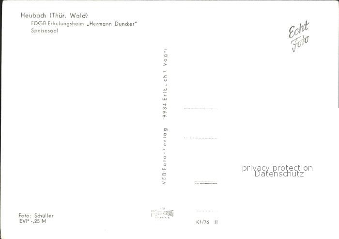 72255032 Heubach Thueringen FDGB Erholungsheim Hermann Duncker Speisesaal postalisch nicht gelaufen Erhaltung siehe scans KatCode: 11110016069024
