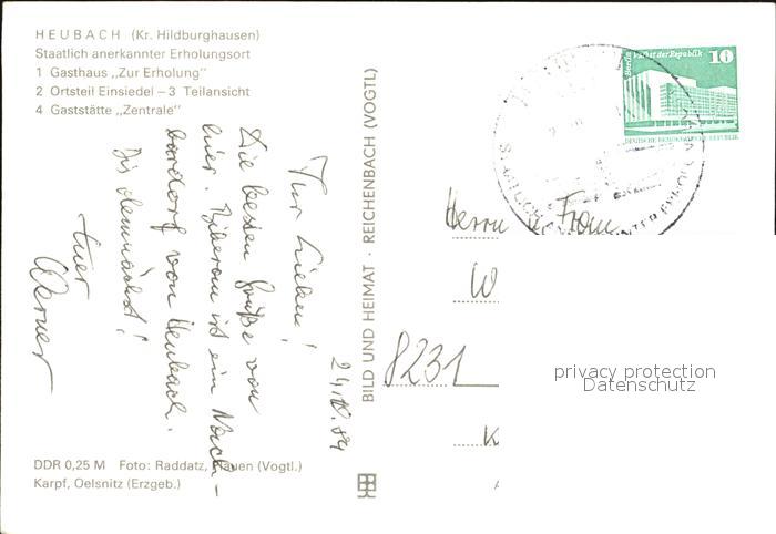 72433195 alte Postkarte Heubach Thueringen Gasthaus Zur Erholung Einsiedel Gaststaette Zentrale postalisch gelaufen Erhaltung siehe scans KatCode: 11110016069024