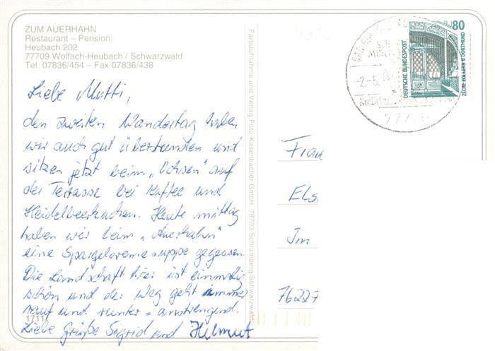 73930337 Heubach Wolfach Restaurant Pension zum Auerhahn postalisch gelaufen Erhaltung siehe scans [FriedD77] alte Postkarte Frie Katcode 11110008317145