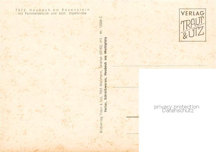 73865368 Heubach Wuerttemberg am Rosenstein mit Fernmeldeturm und kath Stadtkirche postalisch nicht gelaufen Erhaltung siehe scans [WerneD78] KatCode: 11110008136028